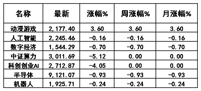 当日部分科技板块行情