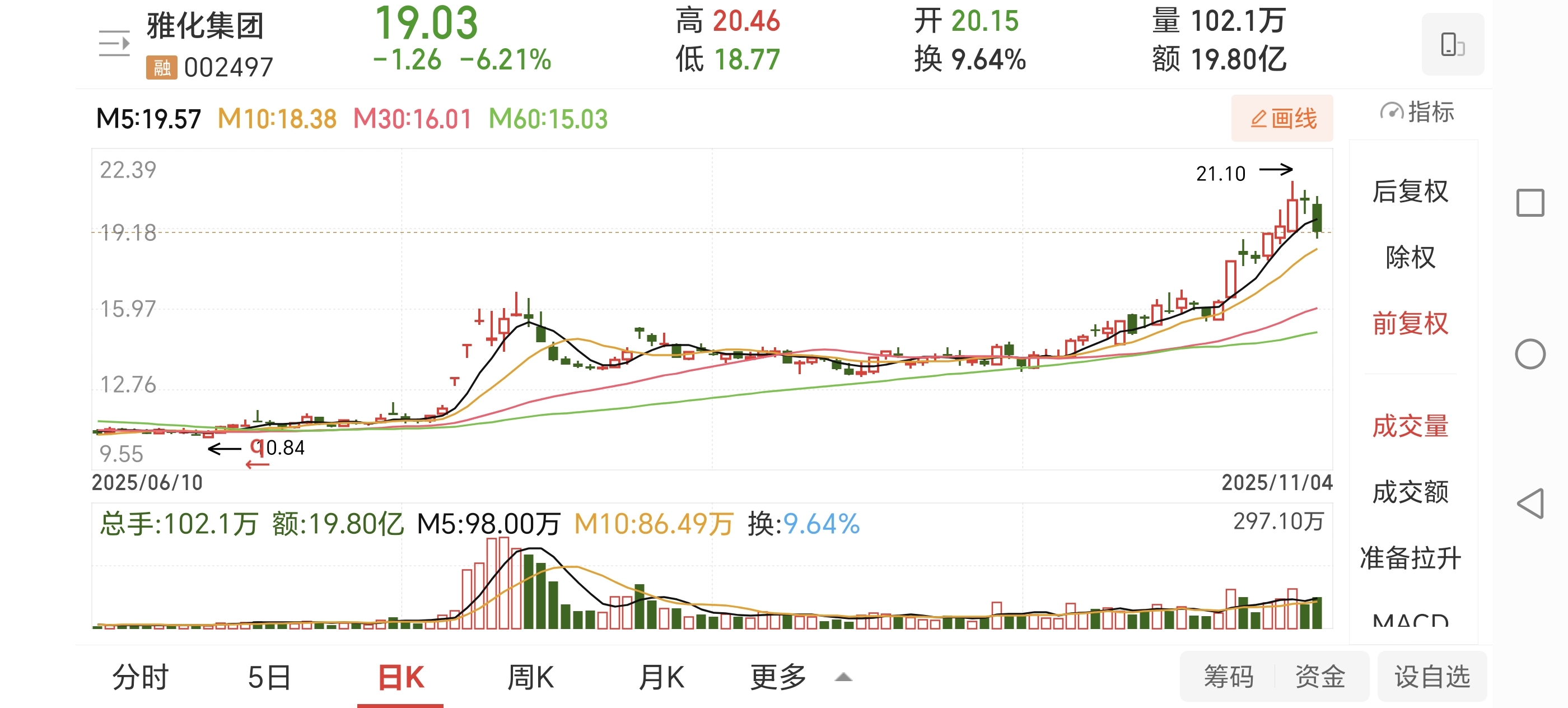 雅化集团,昨天股价虽然还没有跌破五日平均线,但是头狼通过60分钟K线图已经提前预判到风险,并提示大家,今天只要有上涨的机会越涨越跑,结果今天只给你十分钟红盘的机会。
