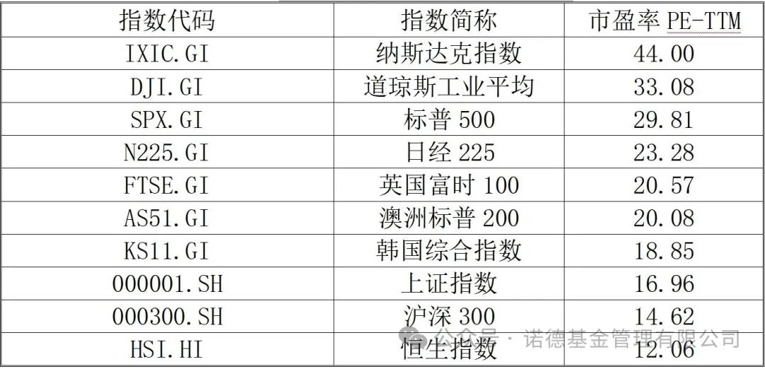 全球主要资本市场估值对比