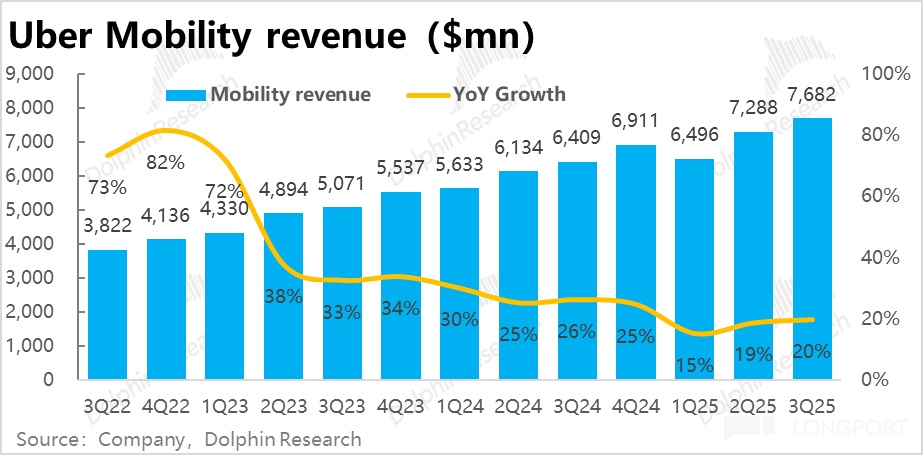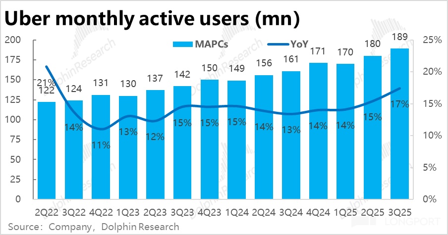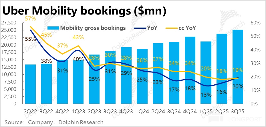 本季网约车(Mobility)业务的订单额同比增长 20%,环比大幅提速 4pct。不过剔除汇率的影响后,实际增速仅环比提升了 1pct 了。即网约车增长确实不俗,不低的基数下继续提速,但没有咋看之下改善那么强劲。