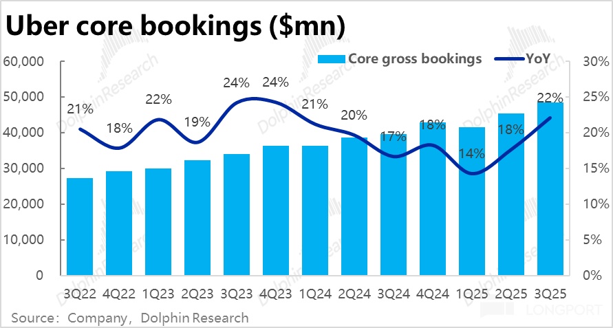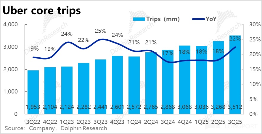 汇总以上外卖 + 打车的核心订单金额增速为 22%,同样提速明显且跑赢市场预期的 20%。