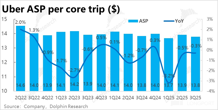 而平均客单价则仍是同比下降 0.3%,在汇率顺风的情况下,客单价仍在下滑的主要原因应是产品结构的下沉,尤其是网约车业务中更多的低价产品。
