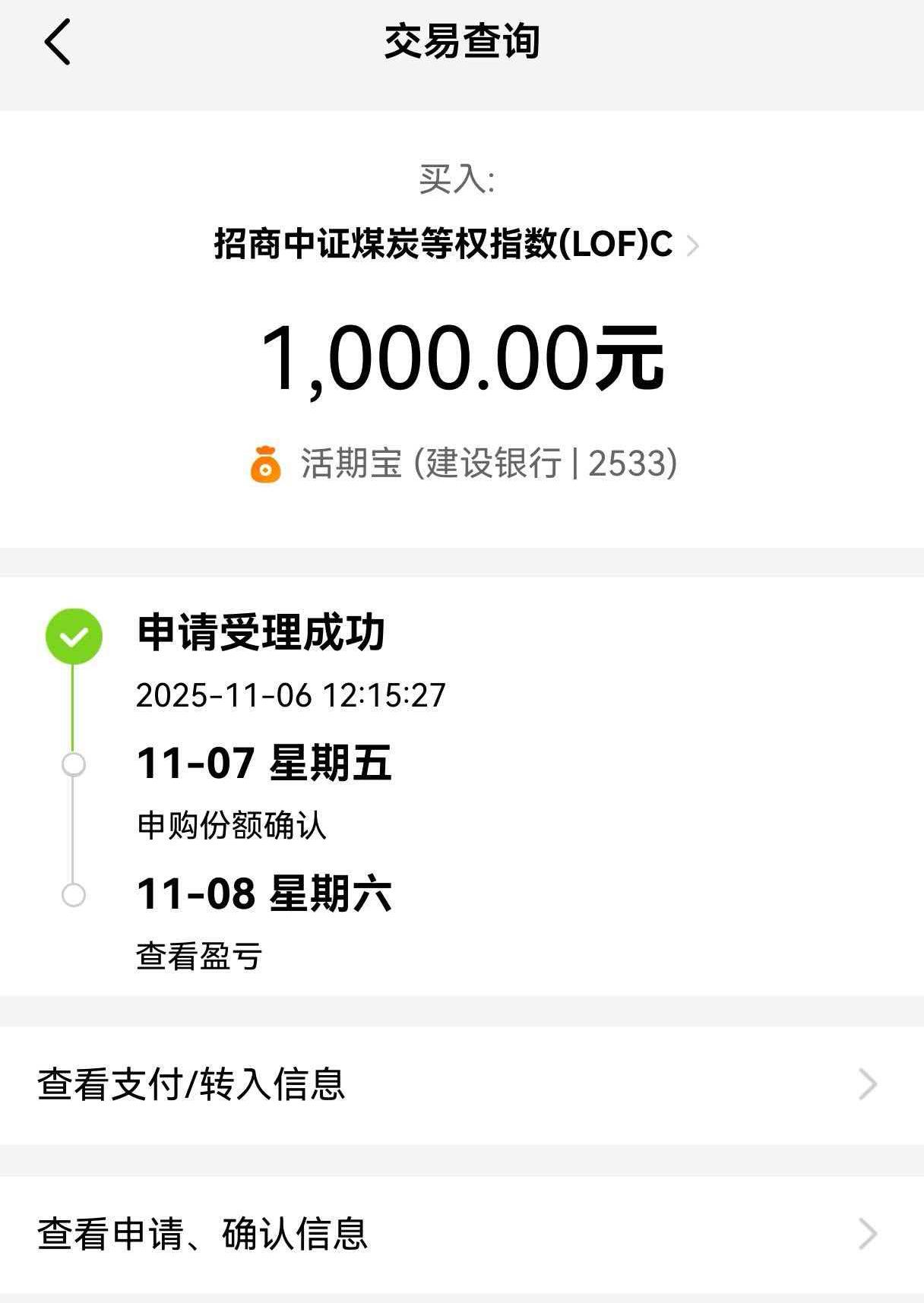 基于行业基本面与市场趋势的双重支撑,果断选择再次加仓招商中证煤炭等权指数C(013596)1000元,以把握本轮周期性机会。