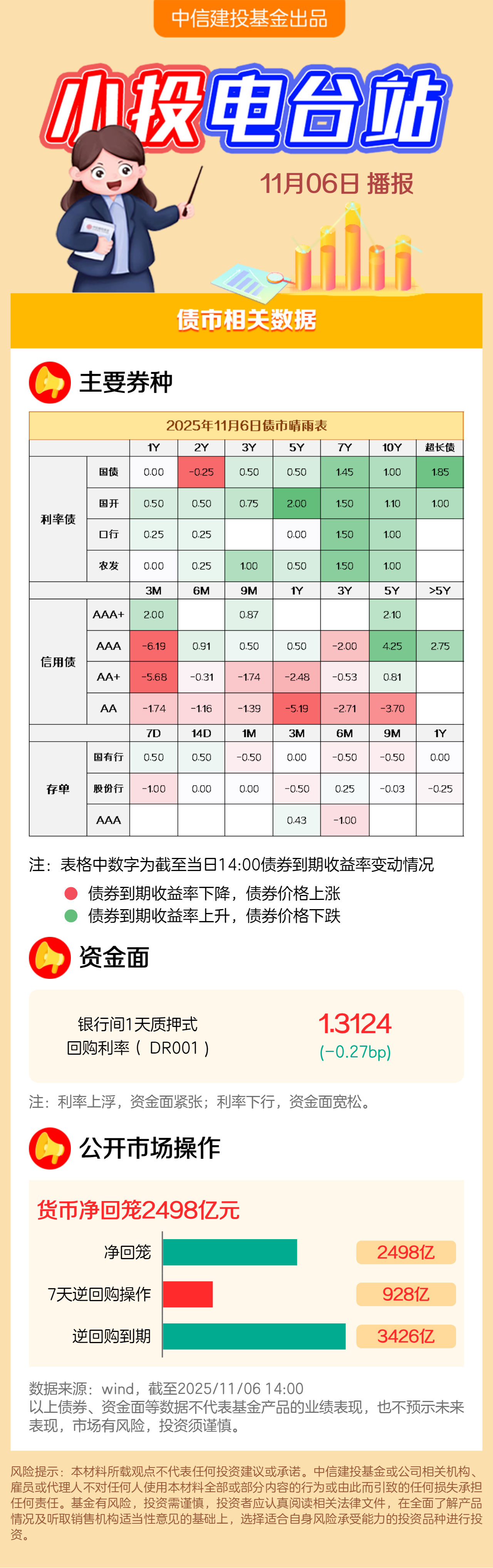 截至2025/11/6下午两点,债市盘中天气 :