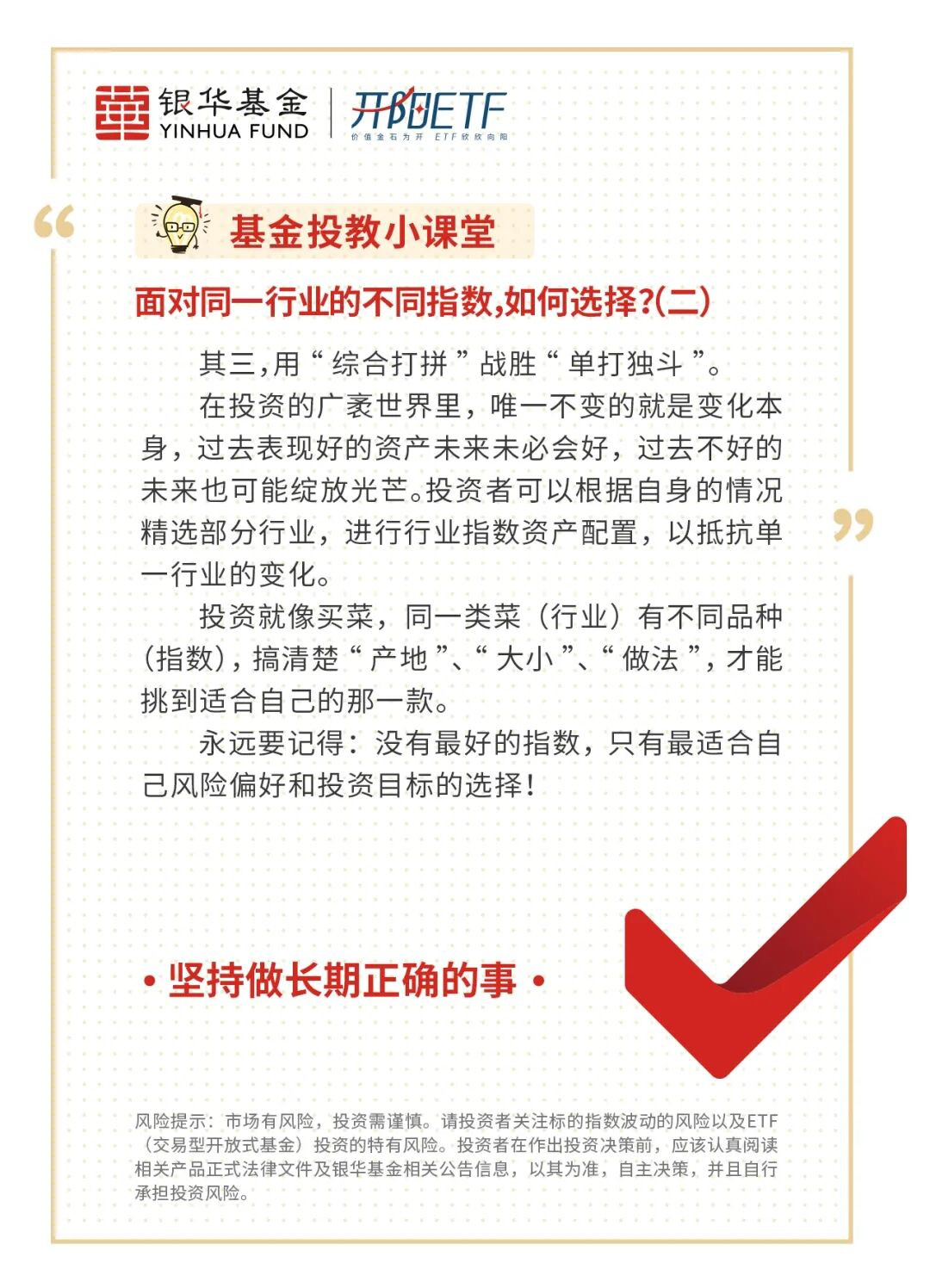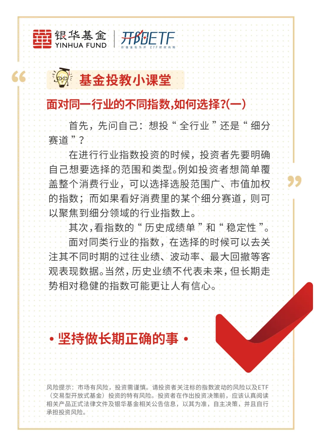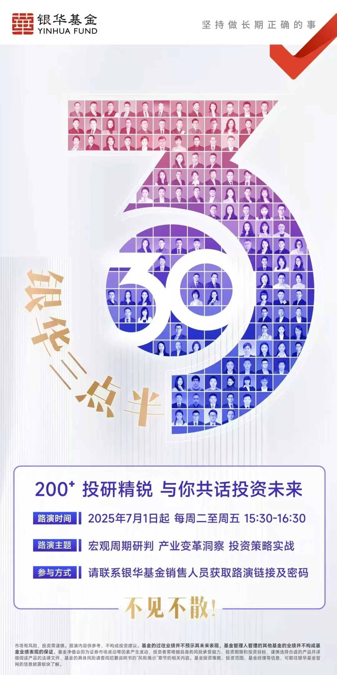 基金有风险,投资需谨慎。本文内容仅供参考,在任何情况下不作为对任何人的投资建议或出售投资标的的邀请。基金的过往业绩并不预示其未来表现,基金管理人管理的其他基金的业绩并不构成基金业绩表现的保证。基金净值会因为证券市场波动等因素产生波动,投资者需根据自身的风险承受能力、投资期限和投资目标,谨慎选择合适的产品并详细阅读产品法律文件。基金投资策略、投资范围、基金经理等相关信息,可前往银华基金官网的信息披露板块查询了解。