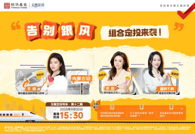 本栏目是银华基金玉衡定投子品牌打造的特色投教直播栏目,以列车为创意灵感,寓意力争通过节目,带领投资者欣赏投资美景。栏目由银华基金经理及外部重磅嘉宾出镜,向观众传递正确的定投理念和科学的投资方式。2025年三季度共发布2期。