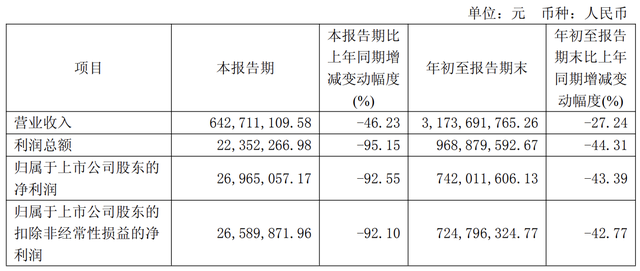 财报显示,三季度口子窖分别实现营收和净利润6.427亿元和2697万元,增速分别为-46.23%和-92.55%,拉长周期看,这也是口子窖自上市以来表现最差的一个季度,要知道在2024年三季度口子窖还能盈利3.619亿元,现在净利润直接跌剩“零头”了。