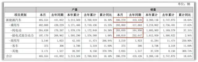 10月份依旧如此,比亚迪纯电车型从去年同期的18.96万辆提升至今年的22.26万辆,但插电式混合动力汽车却从去年同期的31.1万辆下降至21.43万辆。