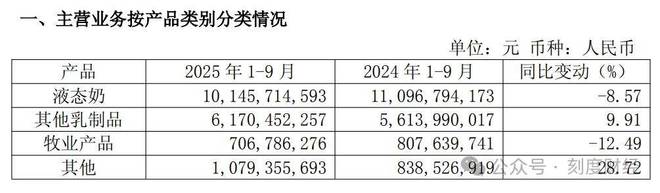 成本端的压力同样不容忽视。据监测数据,2025年9月内蒙古、黑龙江等10个主产省份生鲜乳平均价格3.03元/千克,同比下跌3.5%,环比上涨0.3%。但公司未能通过产品结构升级及时对冲成本压力,反而因液奶促销导致毛利率承压。