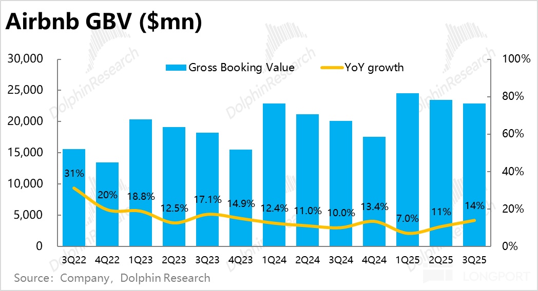 1、业务增长触底反弹:总预定金额(GBV)同比增长了 14%,较上季度显著提速了超 3pct,明显跑赢市场预期。即便剔除汇率顺风的利好后,环比加速幅度也仍是 3pct。