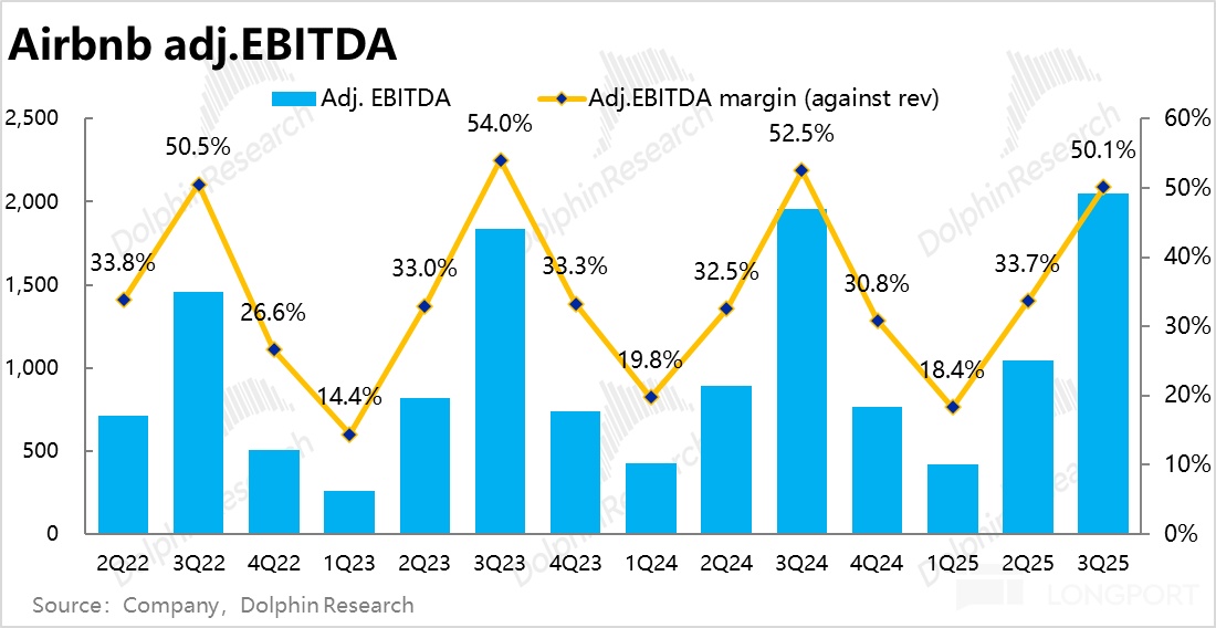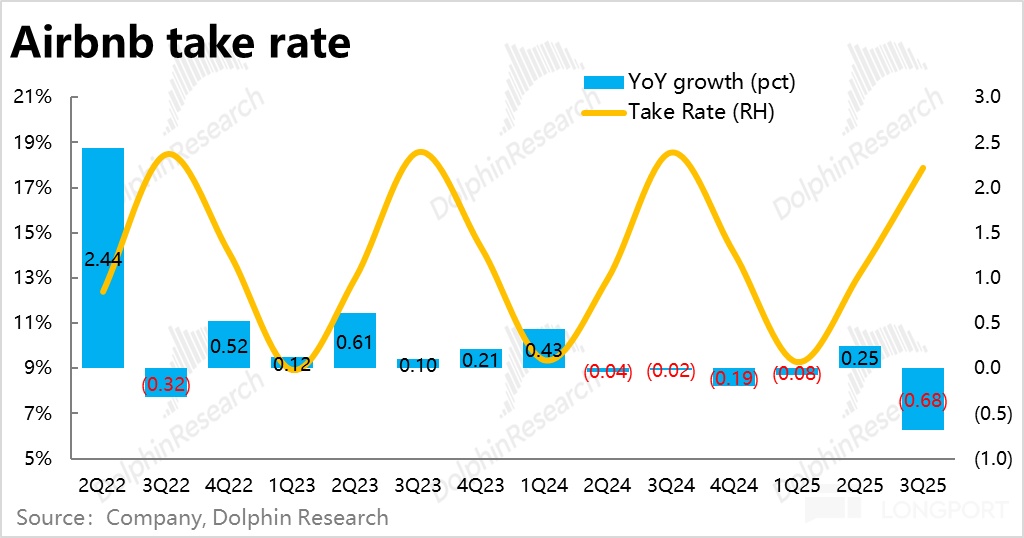 驱动因素上,更重要的量--总间夜预定量本季同比增速达 8.8%,较上季加速了 1.7pct,同样好于市场预期。业绩前 AirDNA 等高频数据给出的信号并不乐观,预期本季增长会在符合到稍低于预期之间,因此间夜量增速实际表现虽然超预期幅度不算很大,仍是重要的方向拐点。