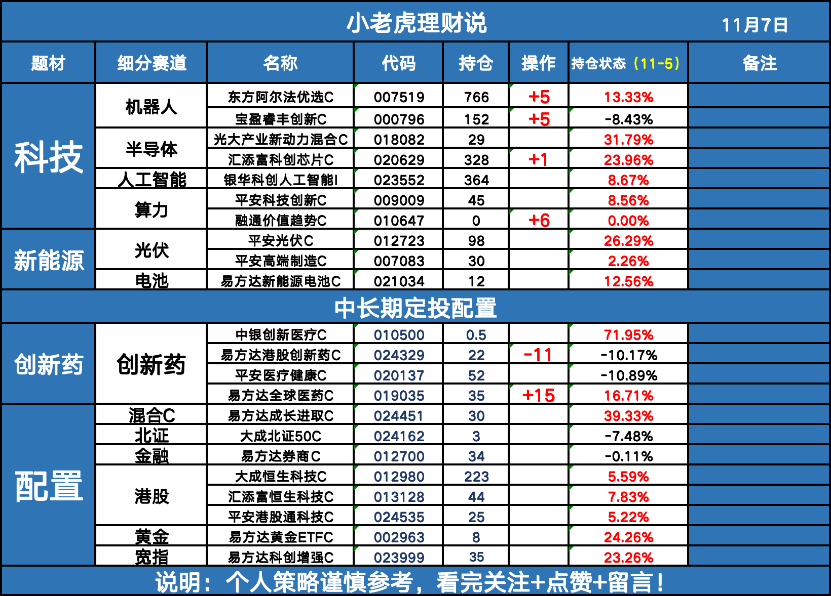 今天有加有减,继续头铁机器人,创新药调一下再加一些,加仓融通价值,定投科创芯片,其他的继续躺的事情了。