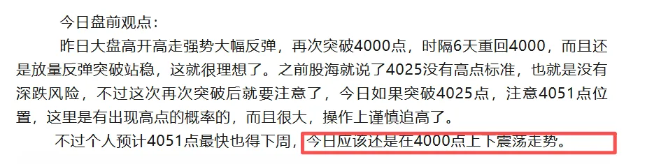 如果下周还是4000点位置震荡,或者再度回撤,那么依然可以看涨是机会,没有高点就没必要减仓防守。