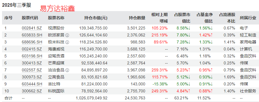 以易方达为例,三季度他们有3只基金规模增长超50亿元。其中,易方达稳健收益(胡剑)、易方达裕祥回报(王晓晨、王丹)是偏稳健的产品,三季度规模分别增加了99、59亿元;易方达裕鑫(胡文伯)偏高波,三季度规模也增加了59亿元。