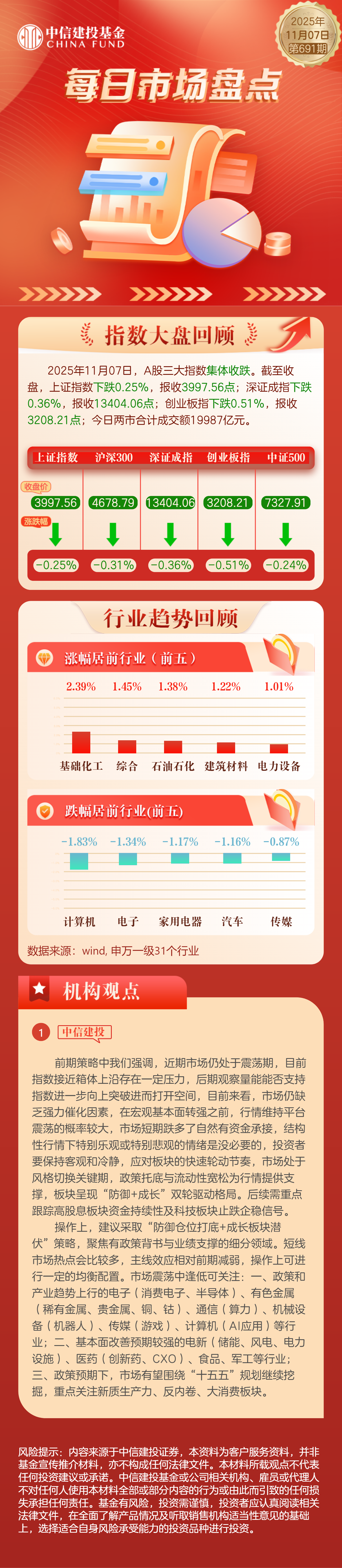 每日点评 11.7|A股三大指数集体收跌,基础化工、综合等行业涨幅居前
