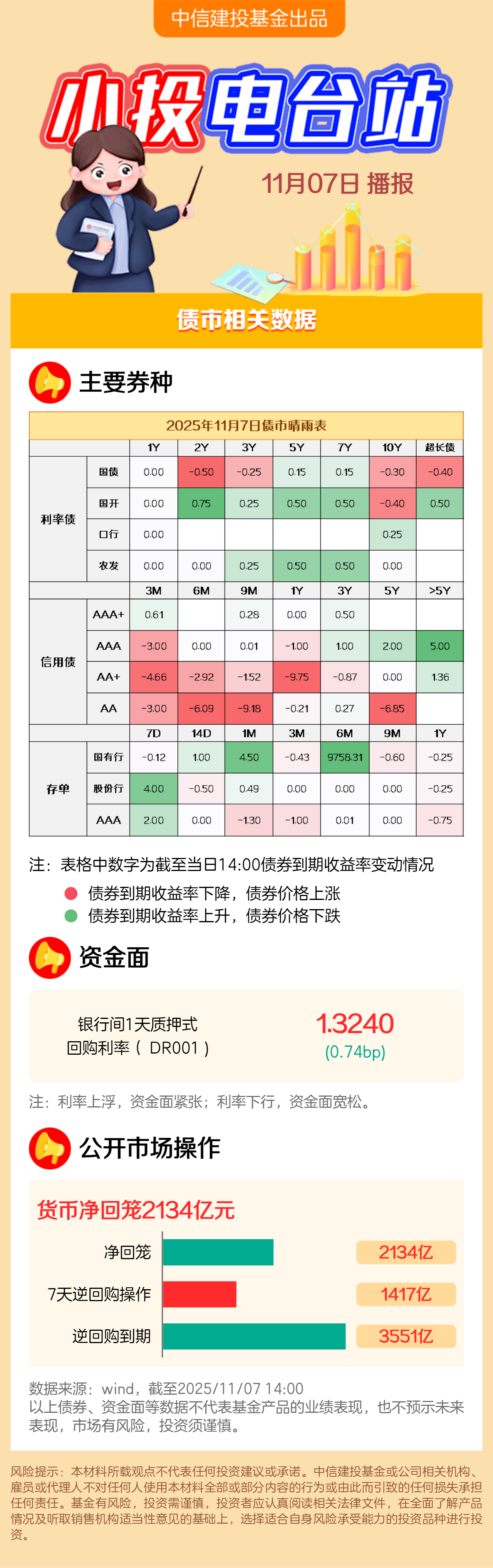 截至2025/11/7下午两点,债市盘中天气 :