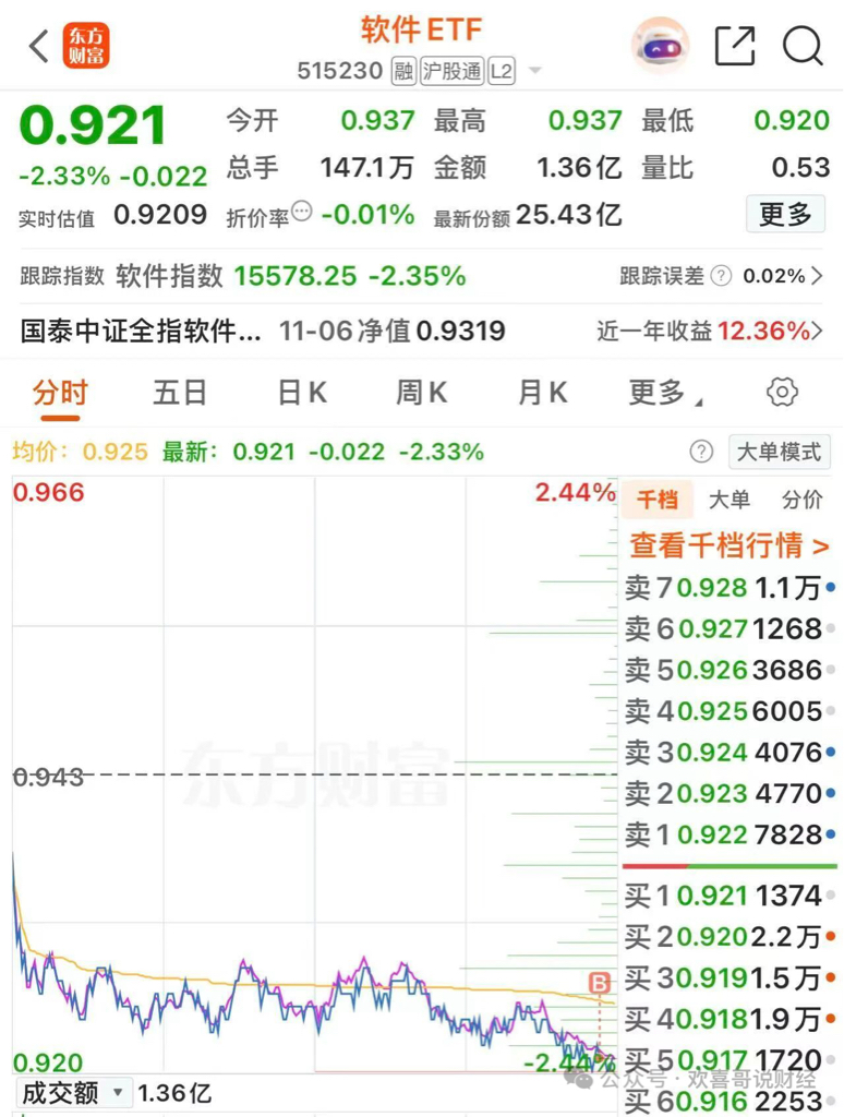 今天唯一一笔操作是收盘前加了一点软件ETF,加过之后成本还在0.9下方,下周看具体情况再做动作。