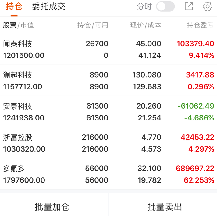 今天题材轮动依旧飞快,海南板块虽有回暖,但量能一般,跟风杂毛建议见好就收,别贪多。持苍位里的多氟多太给力,昨天分歧后今天直接上板,主升行情稳稳的;闻泰科技伴随安世半导体供货恢复也是如期转强。有望持续加速。浙富控股破前高后呈强势分歧,守住5日均线就有突破机会;澜起科技企稳修复趋势未改,继续持有待其转强向上;安泰科技今儿延续调整,不过它题材优质、成长预期还在,先持苍位观望,看能否在当前位置企稳转强。