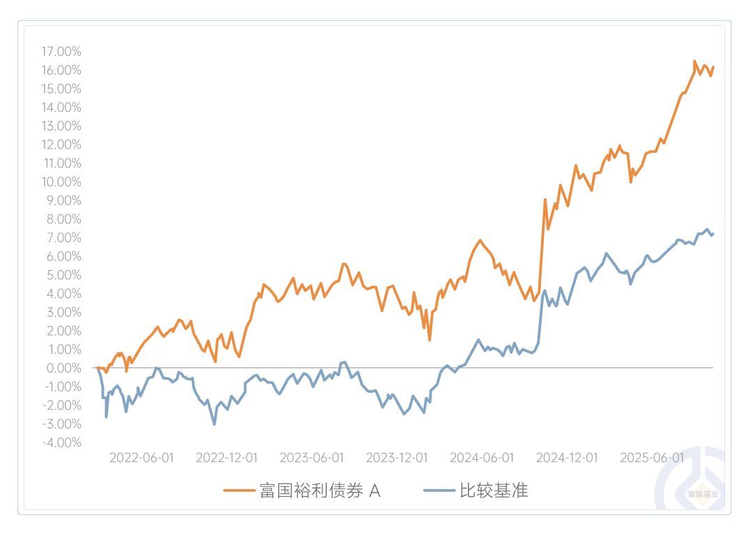 注:富国裕利债券总规模、资产配置情况、A类份额的净值增长率及其业绩比较基准收益率、走势图来自基金定期报告,截至2025/9/30。富国裕利债券A成立于2022/02/23,业绩比较基准为中债综合全价指数收益率*85%+沪深300指数收益率*10%+恒生指数收益率(使用估值汇率折算)*5%。近2个完整年度(2023-2024)的基金份额净值增长率(及同期业绩比较基准收益率)为2.72%(0.03%),5.89%(6.96%),数据来自基金定期报告,截至2024/12/31。期间基金经理变动情况:黄纪亮(2022/02/23至今)、刘兴旺(2022/07/28-2025/11/6)。基金收益率不代表投资者实际收益率,基金份额净值仅为每份额基金产品的净资产。基金历史业绩不构成对未来业绩的保证。富国裕利可以投资其他基金,被投资基金的波动会受到宏观经济环境、行业周期、基金经理管理能力和基金管理人自身经营状况等因素的影响,且该基金还须承担投资其他基金的管理费、托管费和销售费用。因此,前述因素可能会给该基金投资带来特殊交易风险,该基金整体表现可能受所投资基金影响。富国裕利还可以投资于港股通标的股票,将承担港股通机制下因投资环境、投资标的、市场制度以及交易规则等差异带来的特有风险。