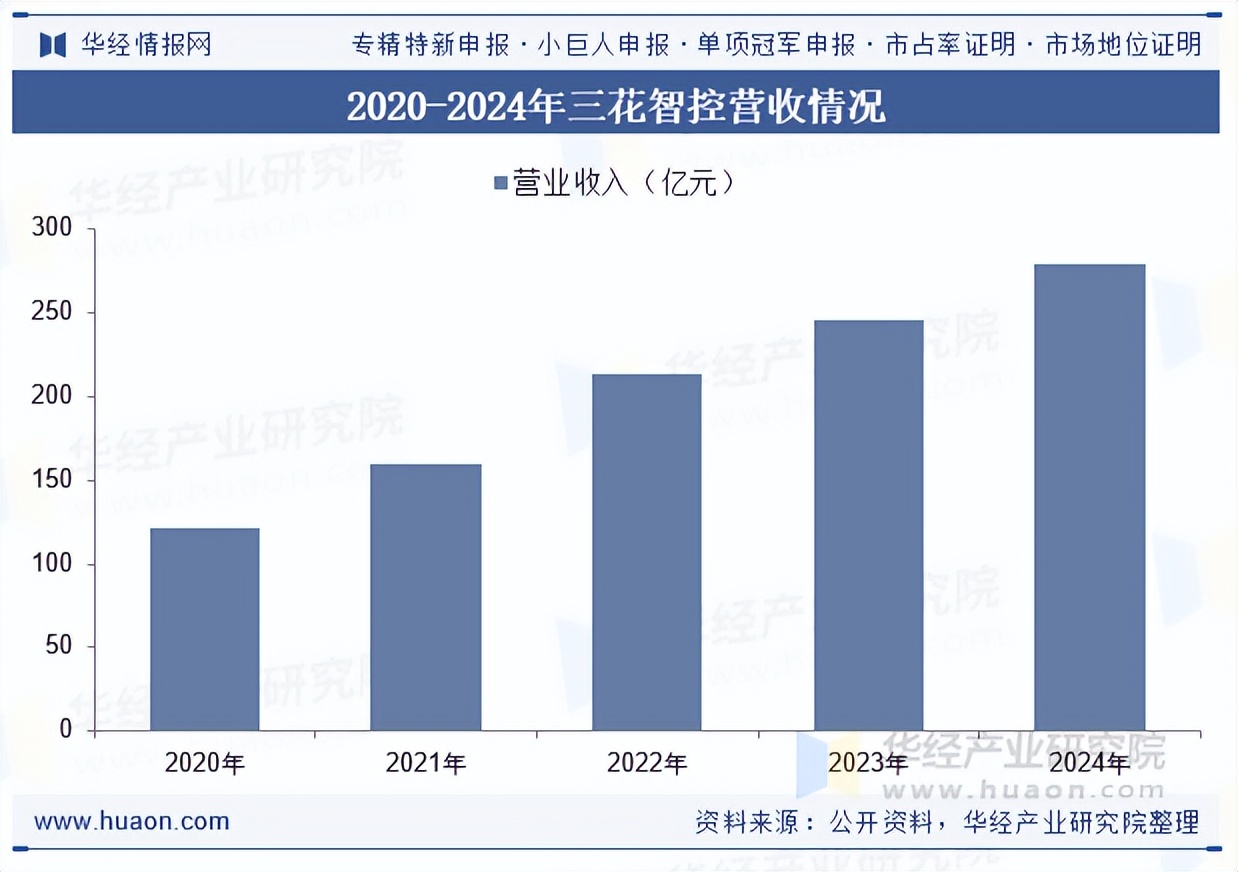 浙江三花智能控制股份有限公司全球最大的制冷控制元器件和全球领先的汽车热管理系统控制部件制造商,“三花”牌制冷智控元器件已成为世界知名品牌,是全球众多车企和空调制冷电器厂家的战略合作伙伴。2024年三花智控营业收入279.47亿元,同比上升13.80%;按照产品划分,制冷空调电器零部件业务营业收入为165.61亿元,同比上升13.09%;汽车零部件业务营业收入为113.86亿元,同比上升14.86%。
