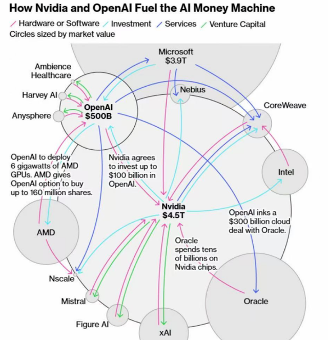 OpenAI一边给英伟达、AMD下巨额订单,一边给甲骨文、亚马逊、微软提供服务。