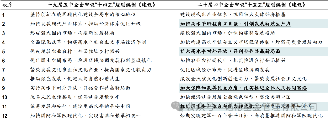 对比“十五五”与“十四五”规划建议