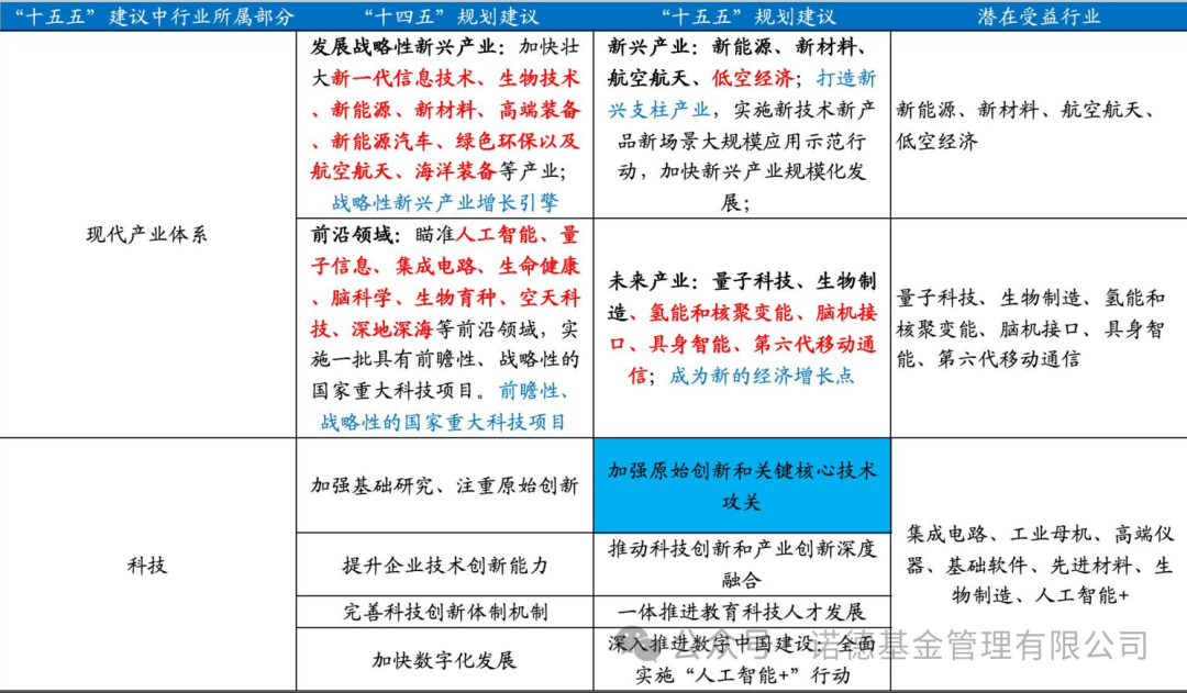 资料参考:国海证券《<“十五五”规划建议>落地后市场如何演绎?》,2025.11.2。注:红色部分为“十五五”规划建议中新增内容;以上信息仅供参考,不代表任何投资建议,基金有风险,投资需谨慎。