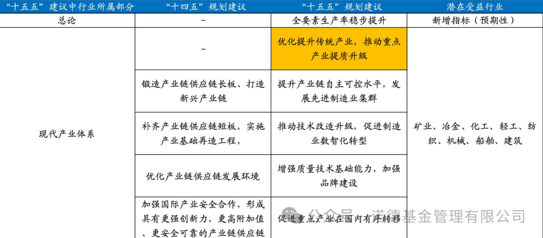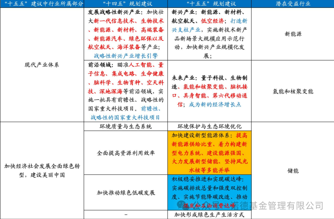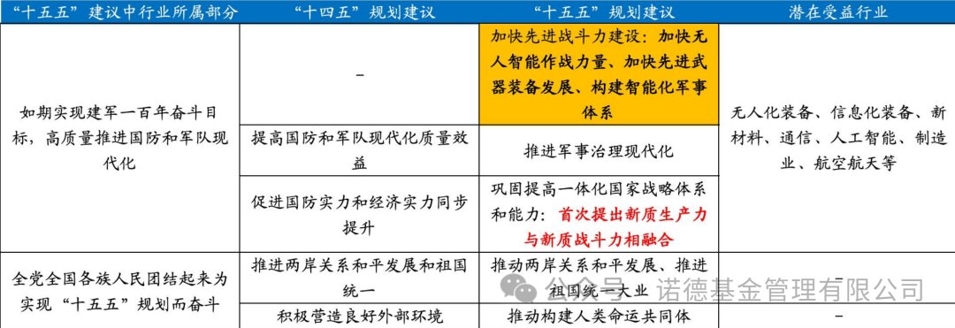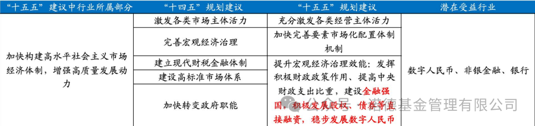 资料参考:国海证券《<“十五五”规划建议>落地后市场如何演绎?》,2025.11.2。注:黄色部分为“十五五”规划建议中新增且单独成段的内容;以上信息仅供参考,不代表任何投资建议,基金有风险,投资需谨慎。