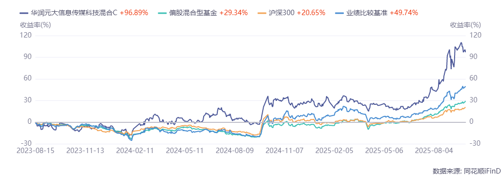$华润元大信息传媒科技混合A$$华润元大信息传媒科技混合C$紧抓AI全产业链主线行情,基金经理前瞻布局,于三年前已提前埋伏AI板块,截至2025.10.31,近三年收益139.96%,排名6/2611;近两年收益129.59%,排名42/3271,业绩持续领先!(排名和业绩数据来源:国泰海通证券《基金业绩排行榜(2025-10-31)》,同类为主动混合开放型,数据截至2025年10月31日,报告发布于2025年11月2日。)