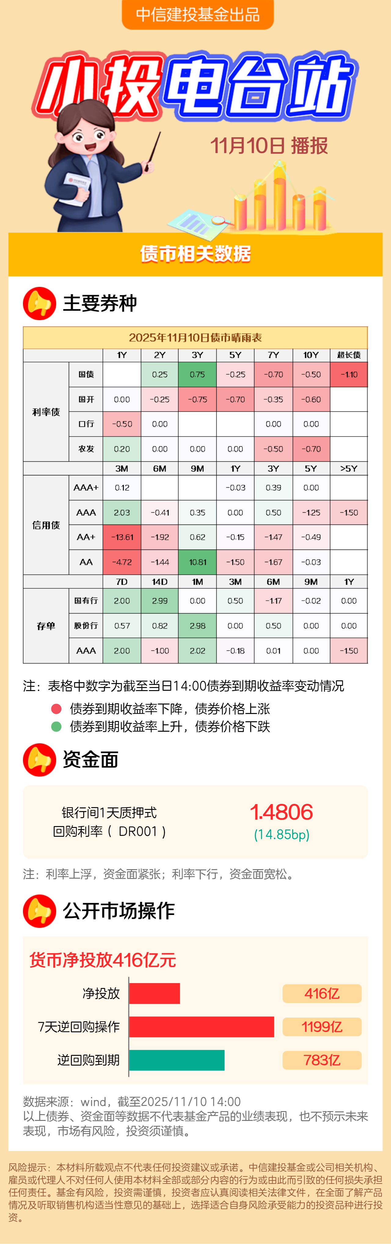 截至2025/11/10下午两点,债市盘中天气 :