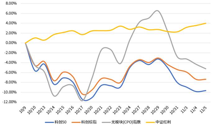 数据来源:万得信息,数据截取区间:2025.10.09至2025.11.05,指数历史业绩不预示未来表现,也不代表具体基金产品表现。