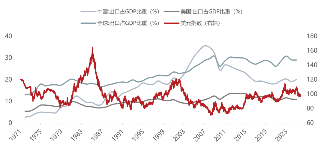 而当美元升值,仰赖美元融资的全球制造业与贸易成本双双提高,给世界其他经济体带来负面影响。美国本身是消费型社会,出口占GDP的比重远低于其他经济体,这就造成美元升值对美国经济的压制小于其他经济体,又放大了“美国经济一枝独秀”的优势。与此同时,从金融视角来看,美元升值也意味着其他经济体债务负担加重,会导致各国融资条件恶化、信贷收缩,资金流向美国,美元进一步升值。而更多资金流入美国又推动了美国金融资产价格上涨,形成正反馈。(资料来源:WIND,20251106)