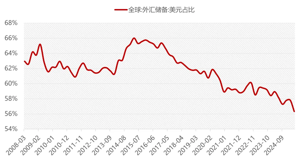 这种强势显然是异常的。因为在美元升值的同时(尤其2020年以来),美元在全球储备货币中的占比是在往下降的,美国贸易和财政赤字是在放大的,通胀水平也是高的,这些理论上都是抑制汇率的因素。