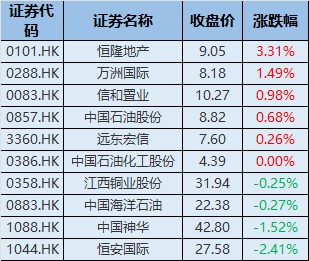 标普港股通低波红利指数收涨0.60%,目前已录得七连阳!部分盘面上内房股、内银股表现活跃;生物医药股走弱。行业上,石油石化、交通运输、银行、房地产、公用事业板块大部分震荡上涨。医药生物、非银金融有所回落。
