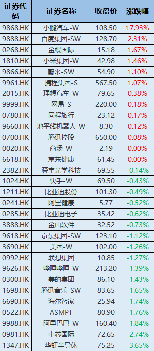数据来源:Wind,上表仅为列示恒生科技指数所有成分股2025年11月11日表现数据,无特定推荐之意,并可能根据指数编制方案调整。