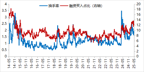 上周市场风险偏好回落;日均换手率下降至1.83%;全A成交降低至1.8万亿左右,融资交易占比回落至12.06%,各项指标均有小幅回落。
