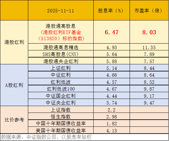 1、 港股高股息优势明显:目前$港股红利ETF基金(SH513820)$标的指数的股息率为6.47%,对于低风险资金来说,仍有配置价值。从机会成本的角度看,目前中国10年期国债的利率为1.8%左右,分红险预定利率为1.5%,人民币5年定存利率仅1.3%。港股的红利股对于南向资金具有很强吸引力。