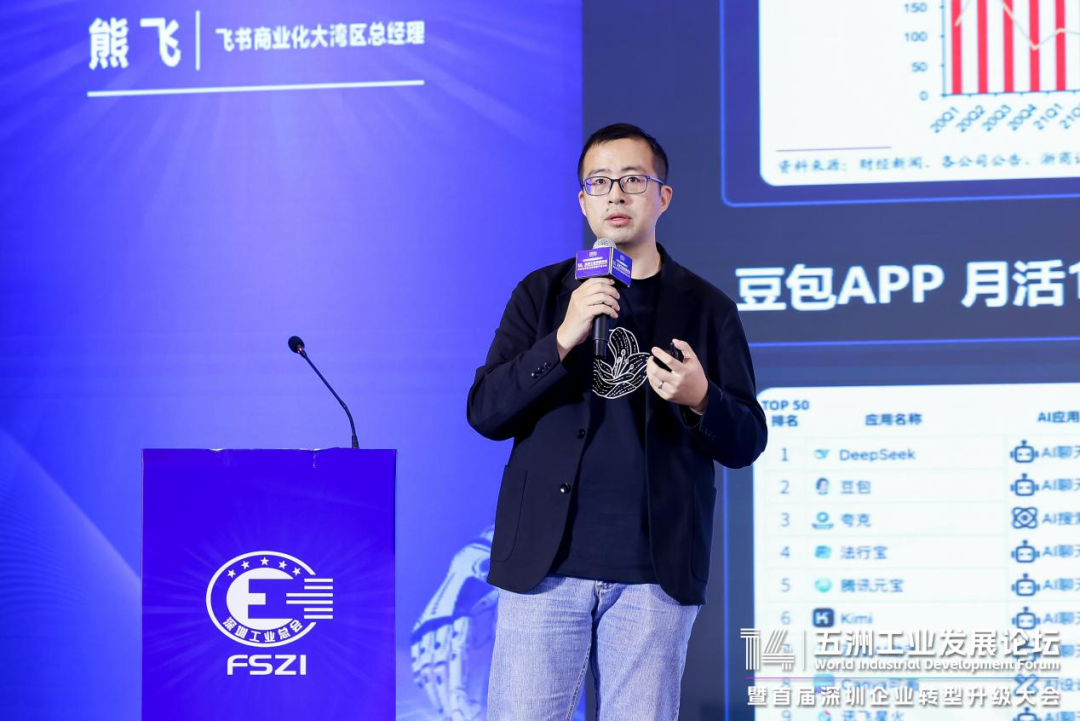 飞书商业化大湾区总经理熊飞以《AI落地生花:智能时代的组织进化与效率革新》为题发表演讲。他指出,AI是字节跳动核心战略,飞书作为AI时代生产力平台,正通过“管理链智能、业务链智造、协同链智慧”三大路径,为企业提供从战略落地到业务提效的全链路AI能力。他分享了AI在制造业落地的五大典型场景:会议管理、知识管理、巡检管理、销售管理及客户声音分析。他表示,飞书将依托原生AI产品、专业工具及咨询服务体系,助力企业开启智能化转型新篇章。