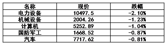 当日行业涨跌Top5