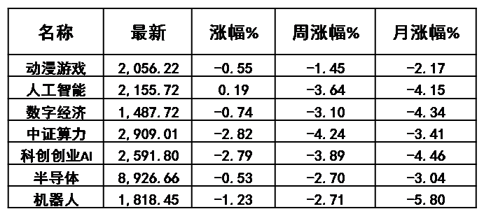 部分科技赛道行情表现