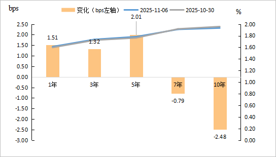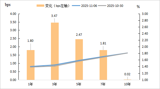 图1 本周国债收益率各期限均下行