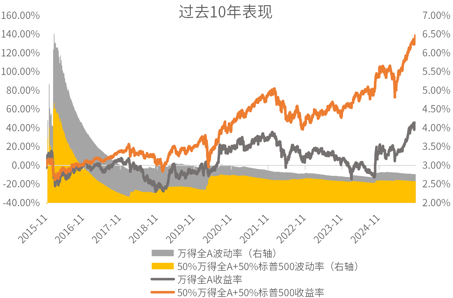 数据来源:Wind,2015.11.1-2025.10.31。历史表现不代表未来,市场有风险,投资需谨慎。以上业绩测算选用基准指数在特定期间的历史数据,仅作示例参考,并不代表其将来表现。业绩测算的收益率为模拟数据,对所使用假设和因素的任何更改都可能对所显示结果产生重大影响,不作为未来收益保证或投资建议。投资有风险。