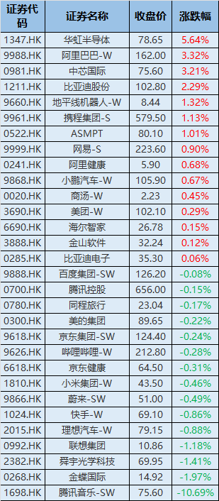 数据来源:Wind,上表仅为列示恒生科技指数所有成分股2025年11月13日表现数据,无特定推荐之意,并可能根据指数编制方案调整。