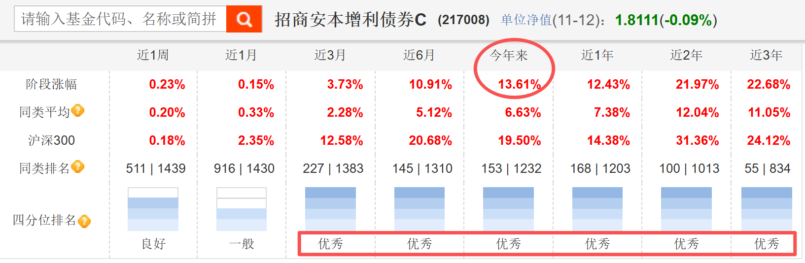 一个二级债基,招商安本增利债券C今年涨幅13.61%,接近纯股票的沪深300涨幅,是真的强!