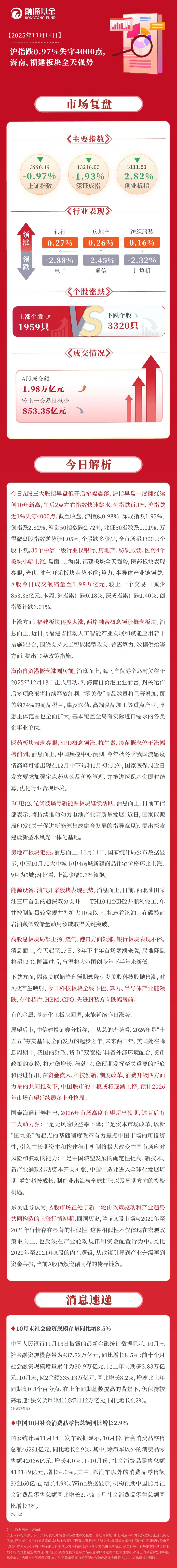 今日A股三大股指早盘低开后窄幅震荡,沪指早盘一度翻红续创10年新高,午后2点左右指数快速跳水,创指跌近3%,沪指跌近1%失守4000点。截至收盘,沪指跌0.98%,深成指跌1.93%,创指跌2.82%,科创50指数跌2.72%,北证50指数跌1.01%,万得微盘股指数逆势涨1.05%。