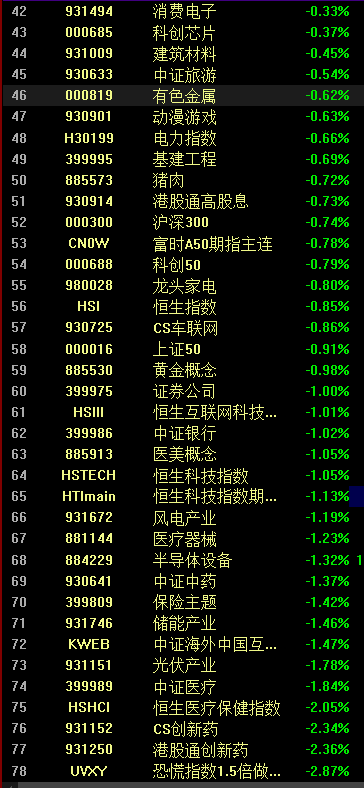 今日减仓板块:
