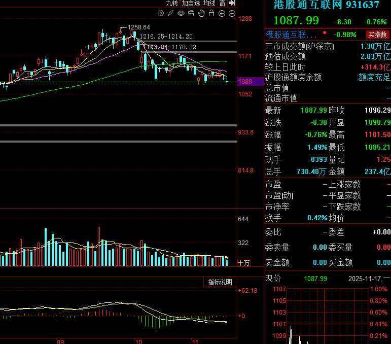 有一段时间没加港股通互联网了,今天再次回踩到我上次加仓的位置附近,那么自然又是我的低吸点,为什么恒生科技不起来呢,主要是两个原因,一个原因是这波行情外资参与不多,第二个原因是他跟的是AI应用的节奏,或者说类似我们软件的节奏,很明显,今年大部分时间涨的都是硬件,而非软件,但是从阿里的消息出来后,很明显AI应用这边的人气又高了一些,包括周末华为也出了一个软件整合硬件的消息,所以很明显今天软件应用偏强,那么我自然也就要推一些恒生互联网的仓位了,不着急,港股通互联网目前估值很低,这些人气票都还没怎么涨呢。