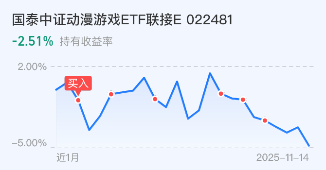 3、动漫游戏,往日投入3W,今天加仓0.2W,$国泰中证动漫游戏ETF联接E(OTCFUND|022481)$$国泰中证动漫游戏ETF联接E$