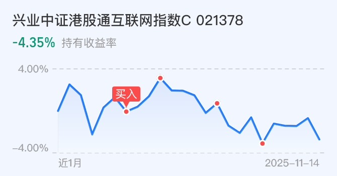 2、港股互联网,往日投入3W,今天加仓0.2W,$兴业中证港股通互联网指数发起式C(OTCFUND|021378)$$兴业中证港股通互联网指数C$