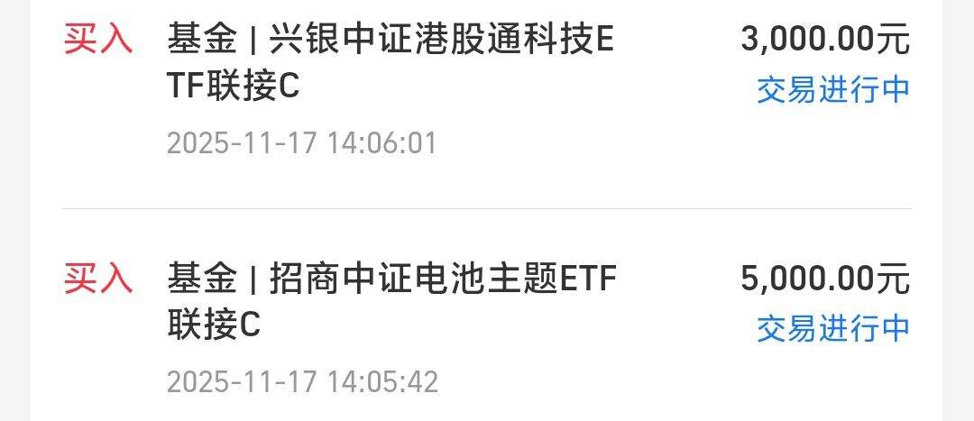 $招商中证电池主题ETF联接C$,+5000元。这只是中证电池指数,持仓更侧重电池链本身,下游储能、固态电池的含量会更高,上一波主升表现会更好。考虑到近期固态电池量产提前,叠加美方四季度抢装光储,反内卷利好上下游供需格局,接下来有望接替并成为市场新的主线。我计划继续布局招商中证电池,跟上电池下一波主升趋势。
